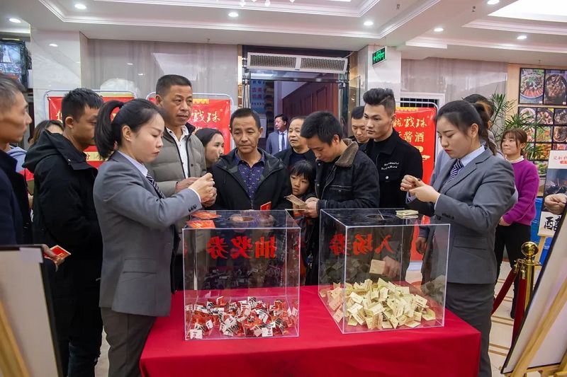 精彩的活動(dòng)少不了重磅的大獎,本次雙龍戲珠酒業(yè)25周年廠(chǎng)慶答謝宴(政和站)設置了特等獎(49999元現金大獎)、一等獎(10克雙龍戲珠金條)、二等獎(5L雙龍戲珠1953洞藏窖酒)、三等獎(華為平板壹臺)、四等獎(雙龍戲珠1953窖酒248ml壹箱)、幸運獎(雙龍戲珠1953窖酒248ml貳瓶)。