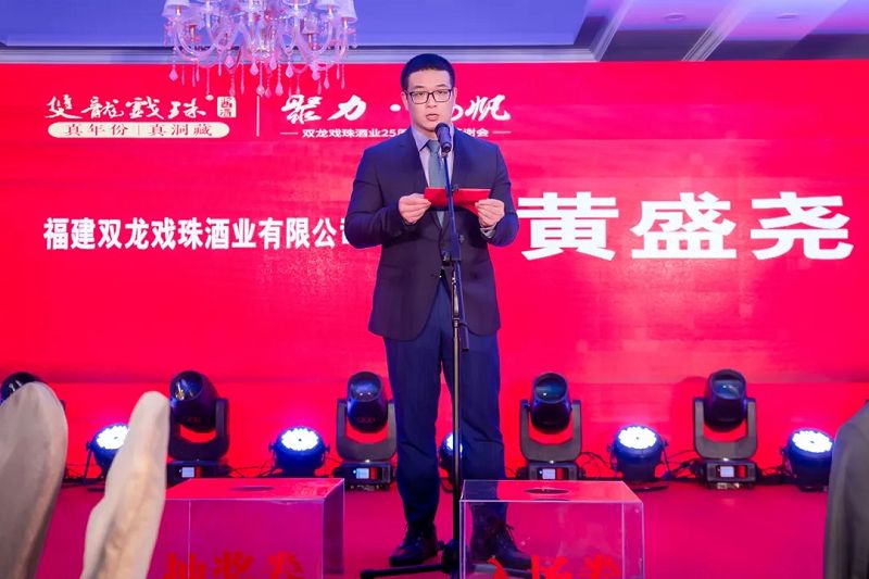 12月6日晚,雙龍戲珠酒業(yè)25周年廠(chǎng)慶答謝宴(政和站)在南平市政和縣武夷明珠大酒店隆重舉行,福建雙龍戲珠酒業(yè)有限公司總經(jīng)理黃盛堯、政和縣九久貿易商行總經(jīng)理黃火出席并致辭。