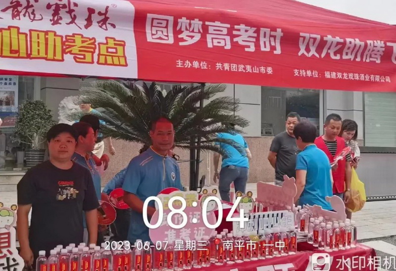 雙龍戲珠酒業(yè)在南平市各(縣、市)考點(diǎn)共設立12個(gè)愛(ài)心助考點(diǎn),提供免費飲用水、扇子、防暑用品等物資,供考生和家長(cháng)免費領(lǐng)取。通過(guò)細致熱情的服務(wù),舒緩考生、家長(cháng)緊張的心情,用行動(dòng)詮釋“愛(ài)心助考”,為考生加油。