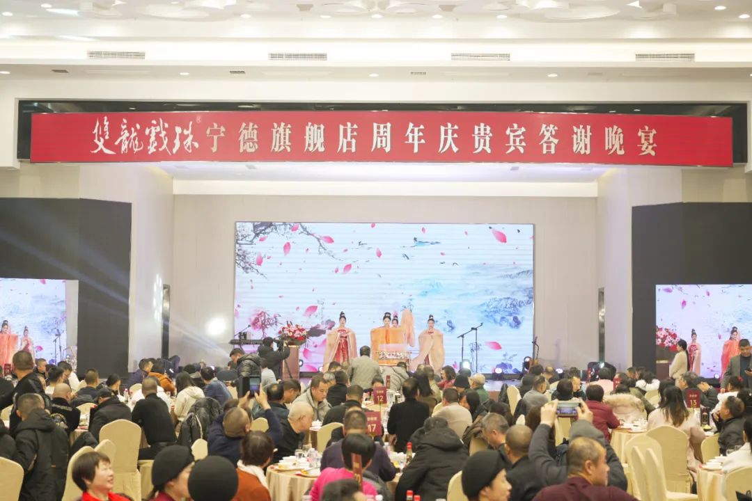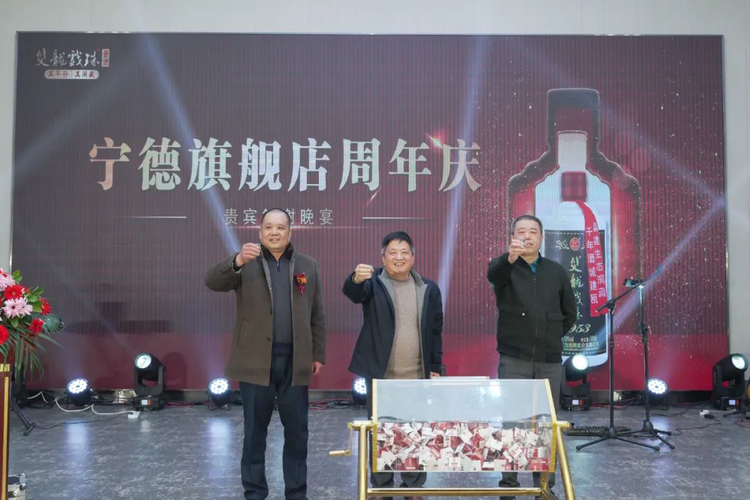 12月23日,雙龍戲珠寧德旗艦店周年慶貴賓答謝會(huì )在寧德艷陽(yáng)金鼎軒隆重舉行。福建雙龍戲珠酒業(yè)有限公司董事長(cháng)黃德鋒、寧德宜嘉玖順商貿有限公司總經(jīng)理陳俊生出席活動(dòng)并致辭。