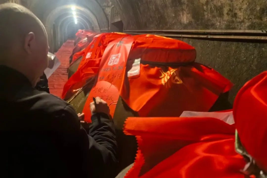 封壇活動(dòng)上,存酒客戶(hù)們進(jìn)行了雙龍戲珠洞藏醬酒探秘之旅,進(jìn)入雙龍洞封壇,貼原酒號碼貼、封條簽名、持收藏證合影留念,了解建甌三千年酒文化,體驗12987坤沙醬香工藝,參觀(guān)生態(tài)洞藏儲酒區——“東南第一洞藏”雙龍洞。