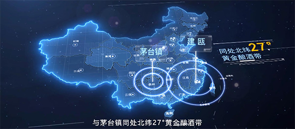 建甌生態(tài)環(huán)境與茅臺鎮地處北緯27°黃金釀酒帶。無(wú)霜期長(cháng)、溫差小、高山環(huán)抱,地形仿佛就是個(gè)巨大的酒甑;雨熱同季的氣候,使得建甌的空氣和土壤最適宜釀酒所需的微生物生長(cháng)。
